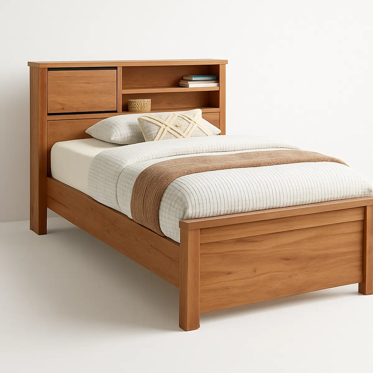 Give your child a smart, space-saving upgrade with the StoreCraft Kids Bed, featuring built-in headboard shelving, durable wooden construction, and a clean modern design that keeps books, toys, and essentials organized in one stylish place.