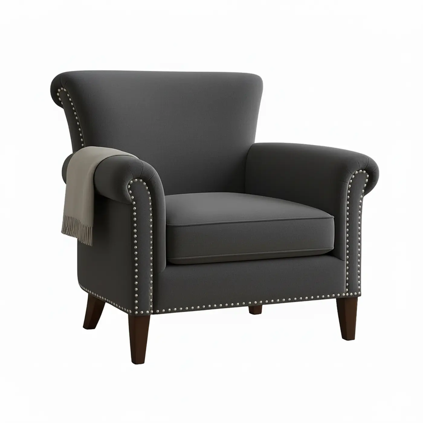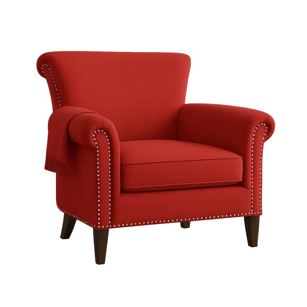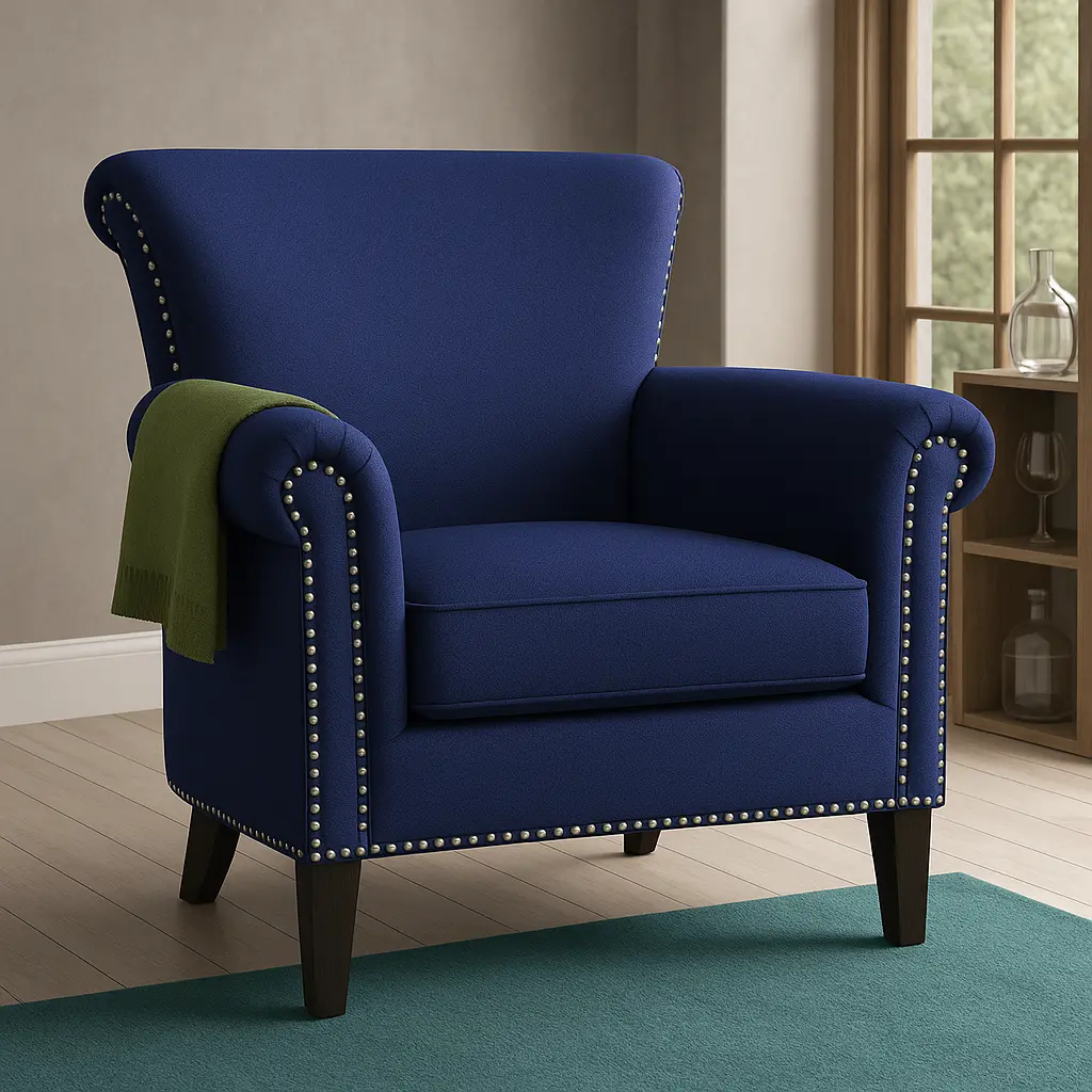 Enjoy an extra seat in your living room or office with this Ferrero Premium Vintage Chair with Classic details, including nail head trim and tall, dark wood legs, help Ferrero Premium Vintage Chair make you feel at home with antiques or retro pieces. Semi-firm seating and a tapered back keep guests comfortable, while durable polyester fabric upholstery keeps this chair looking good for years to come. This is true masterpiece in our luxury collection at Asghar Furniture