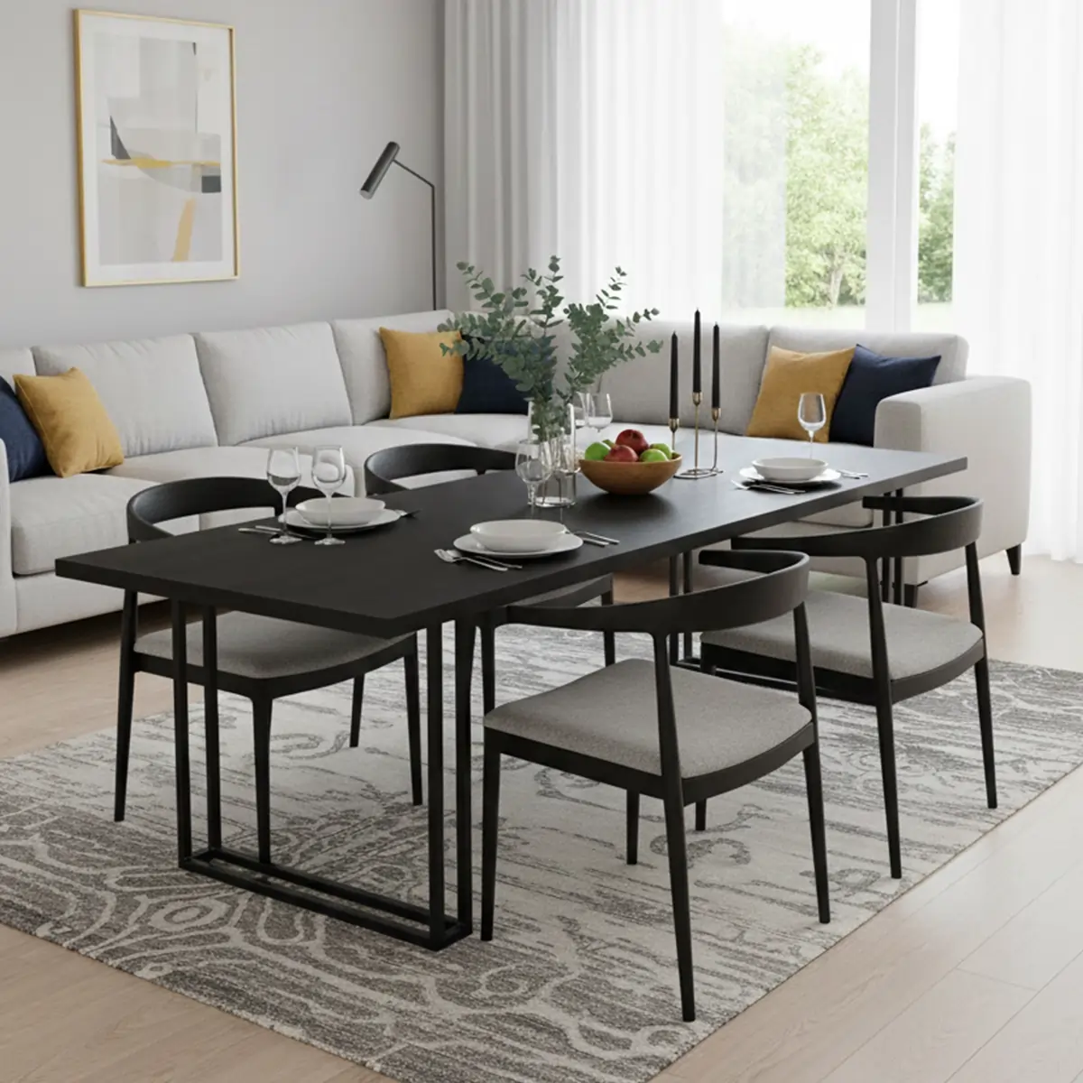 The ForgeLine Dining Table combines a bold black metal frame with engineered-wood top, creating a modern industrial centerpiece built for style, strength, and everyday functionality. Perfect for contemporary homes, loft interiors, and minimalist dining spaces wanting a sleek, architectural statement.