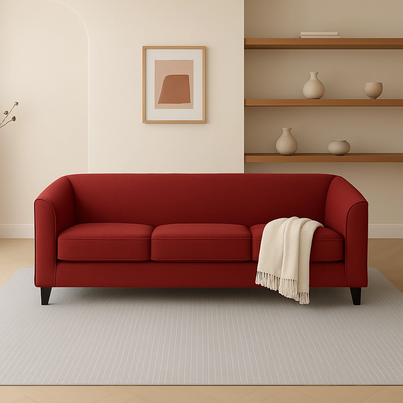 Trendy and Classic, this contemporary Hollis Classic Minimalist Sofa brings a glare of charm to your living room. A flawless design by Asghar Furniture. Available in all types of fine fabrics and upholstery the built of this sofa is perfect for homes that have a compact space. The wide arms and relaxed back lend a highly comfortable support to make those lounging times more fun. Accent this timeless Hollis Classic Minimalist Sofa with colorful cushions and bold prints with it.