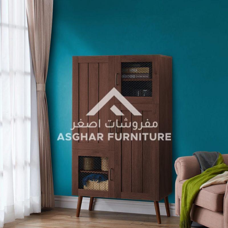Keep all of your shoes in one place with this simple, yet effective and stylish 4 Door Shoe Cabinet. This cabinet comes with four doors. cabinet fronts allow air to circulate through the shoe cabinet. Finished in a weathered and distressed walnut.