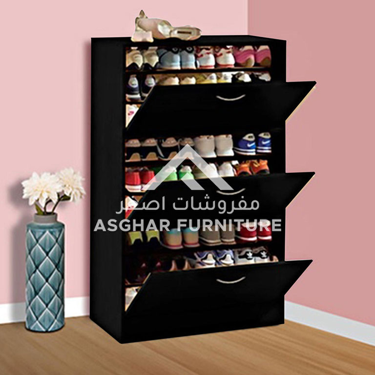 At Asghar Furniture, Featuring Three-Door Shoe Cabinet a modern design and ample storage space, Three doors conceal multiple shelves with storage space for up to 36 pairs of shoes.
